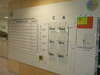 Mise en place d'un mur aimanté et effaçable. Création de magnétiques décrivant les différentes étapes de la Résolution Structurée de Problème (RSP) : description et explication du standard, mise en perspective du problème dans son contexte, recherche de causes potentielles puis des causes racines avant tri des actions pour définition du TOP 3. Utilisation d'accessoires (indicateurs rotatifs et fléchettes magnétiques) pour faciliter la sélection des causes.